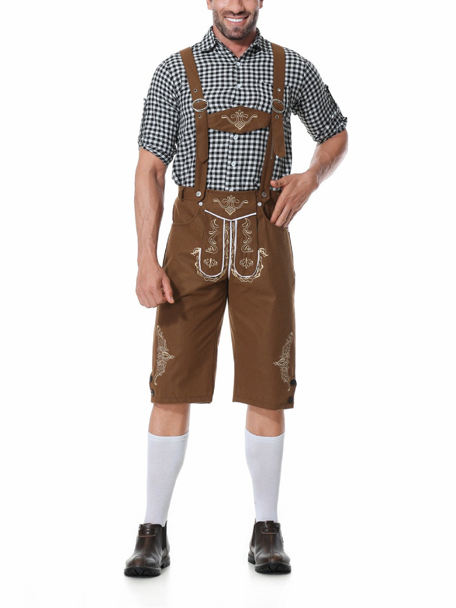 • Ensemble complet : lederhosen avec bretelles + chemise traditionnelle à carreaux